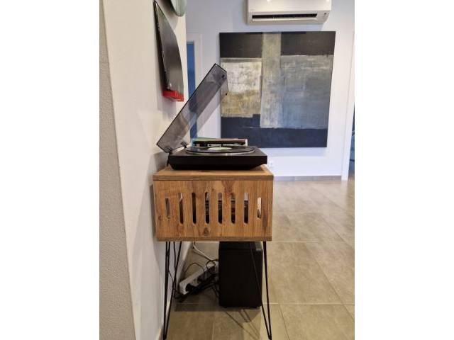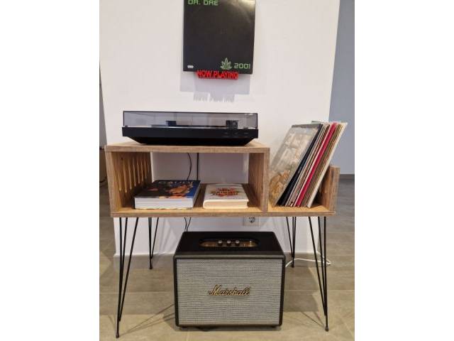 Plattenspieler-Möbel mit „hairpin“-Beinen + Vinyl-Aufbewahrung (Etsy-Stil)