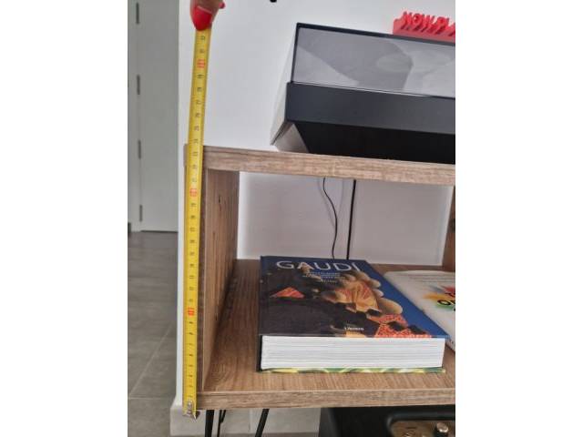 Möbel für Plattenspieler mit hairpin-Beinen und zwei Modulen: eines offen für Bücher/coffee table books und eines für 12"-Schallplatten. Im Etsy-Stil gefertigt, sehr stabil und in ausgezeichnetem Zustand.
