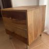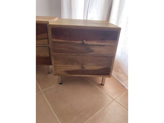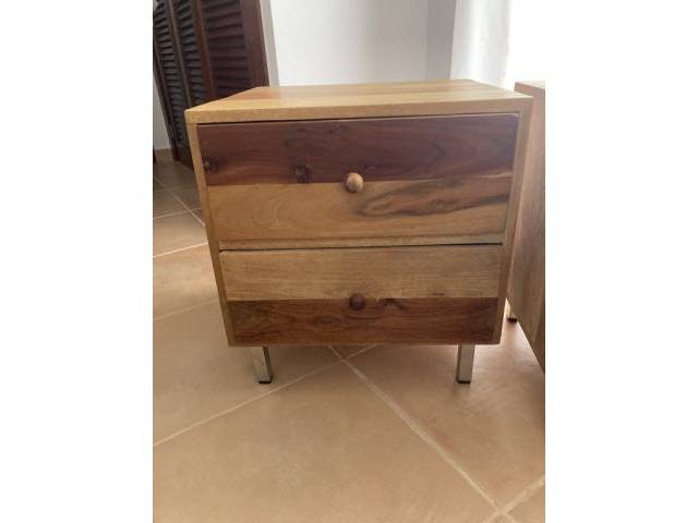 Ich verkaufe zwei schöne Nachttische ( 50cm breit, 45cm tief, 53cm hoch) aus kompletten Massivholz. Die Tische stammen aus dem renommierten Möbelhaus Riera in Manacor und haben wirklich nur leichte Gebrauchsspuren.( Neupreis lag bei über 400€ pro Tisch) Wie auf den Bilder zu erkennen, entsteht durch die Holzmaserung eine lebendige Wirkung, die die Nachtische zu Unikaten macht.