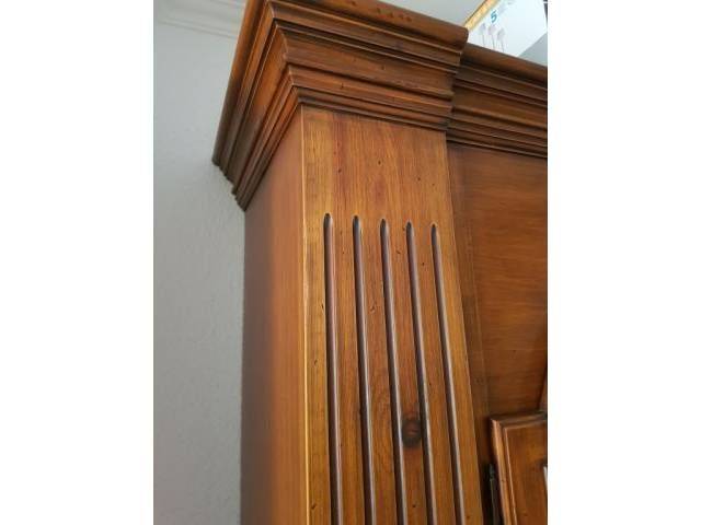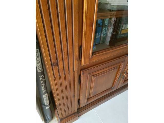 Ich biete eine schöne Kommode mit integrierter Vitrine aus hochwertigem Holz an. Ideal zur Aufbewahrung und Präsentation von Geschirr, Gläsern, Büchern oder anderen Gegenständen.