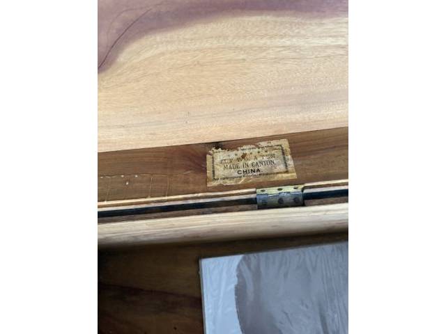 • Material: Massives Hartholz, vermutlich Zedern- oder Kampferholz (duftet leicht aromatisch, schützt vor Insekten)