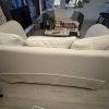 Wir verkaufen unser schönes, weißes Zweisitzer-Sofa mit hochwertigem Leinenbezug.