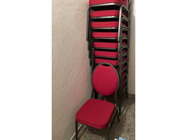 Robuste und bequeme Bankettstühle mit roter Polsterung und stabilem Metallgestell. Platzsparend stapelbar, ideal für Feiern, Veranstaltungen, Vereine oder Konferenzräume. Gepflegter und neuwertiger Zustand, sofort einsatzbereit.Perfekt für alle, die viele Sitzplätze flexibel und ordentlich verstauen möchten. Stückzahl 20.