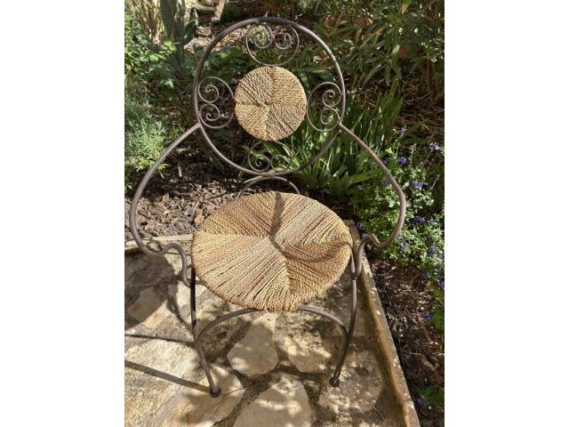 3 Stühle aus schwerem Metall mit Gorbgeflecht
