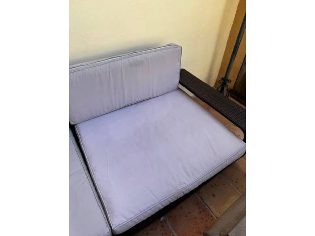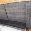 klassisches Rattan Lounge Möbelgarnitur aus Kunststoff mit hochwertigen Polstern, jedoch Abnutzung, kann jedoch gereinigt werden.
