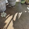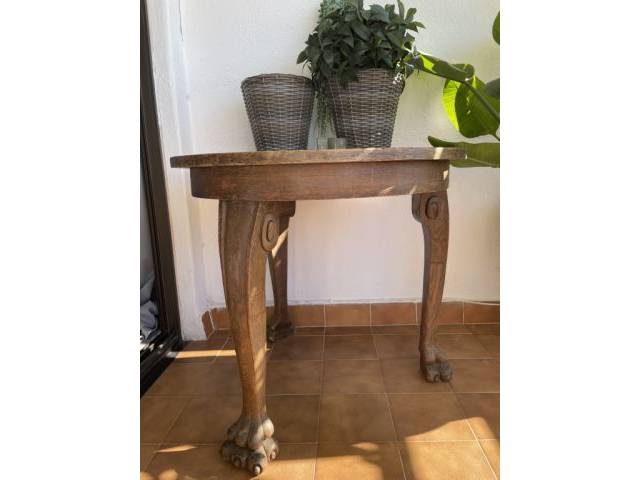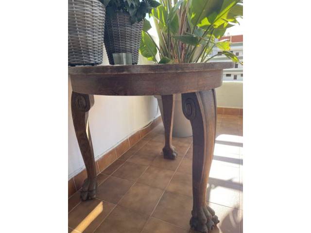Der Tisch ist 72 cm hoch und die Tischplatte hat ein Durchmesser von 82 cm. Er hat 3 Tischbeine, die ein sehr spezielles Design haben. Ideal als kleiner Esstisch oder Eingangshallen-Tisch. (Sehr schwer)