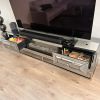 Praktischer Stauraum durch seitliche Schubladen und großzügige Ablagefläche für TV und Mediengeräte.