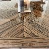 Das Holz hat eine besondere, natürliche Struktur und wirkt durch die Glasplatte besonders edel.