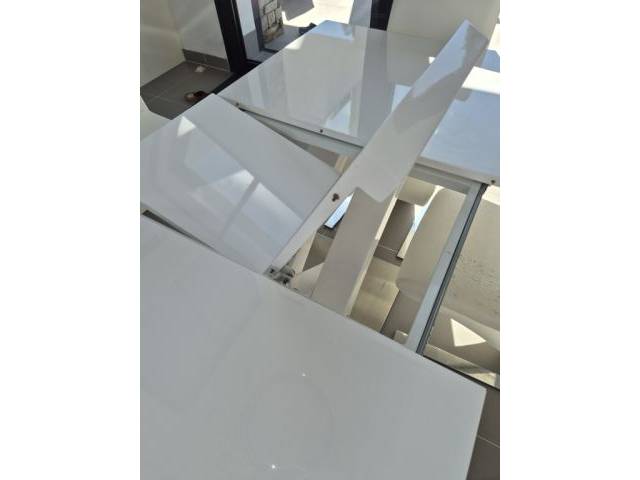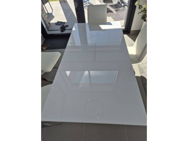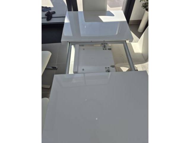 Verkaufen einen hochwertigen weissen Esstisch 140cm/180cm x 90cm ausklappbar inkl. 6x weisse Stühle