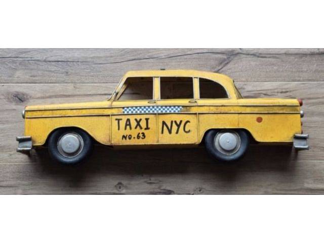 Großes Wandtaxi aus Metall im Vintage-Stil, perfekt, um Ihrer Dekoration einen Retro-Touch zu verleihen.