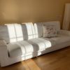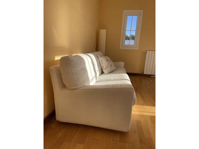 Weißes Sofa aus weißen festeren Stoff Art Leinenstoff mit Lattenrost als Schlafsofa zu verkaufen, guter Zustand.