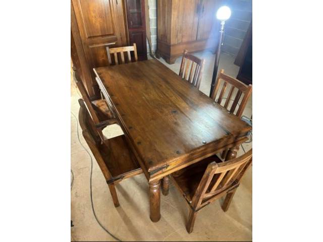 Wunderschöner Massivholz-Esstisch im Landhausstil mit 6 passenden Stühlen
