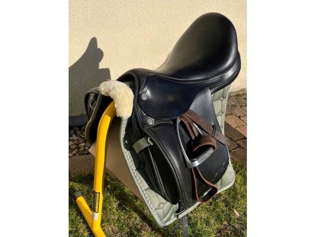 Zum Verkauf steht ein hochwertiger, gut erhaltener Prestige Dressursattel aus Rindsleder.