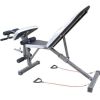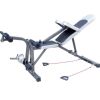 Die Rückenlehne lässt sich nach oben und unten verstellen, Ganzkörpertraining ist möglich. Die Bank ist bereits auseinander gebaut und in einem Karton verstaut.