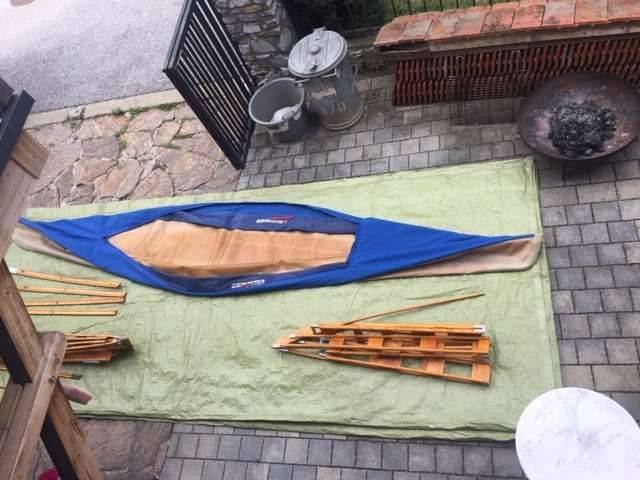 Verkaufe 2er Kajak Klepper, muss zusammen gebaut werden, aber alle Teile sind nummeriert und somit leicht zusammen zu bauen. Die Haut ist ohne Beschädigungen und elastisch. Dazu gibt es 2 Doppelpaddel und Transportwagen. Preis ist VB